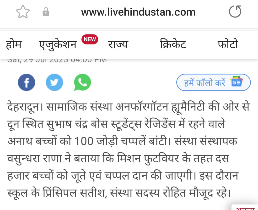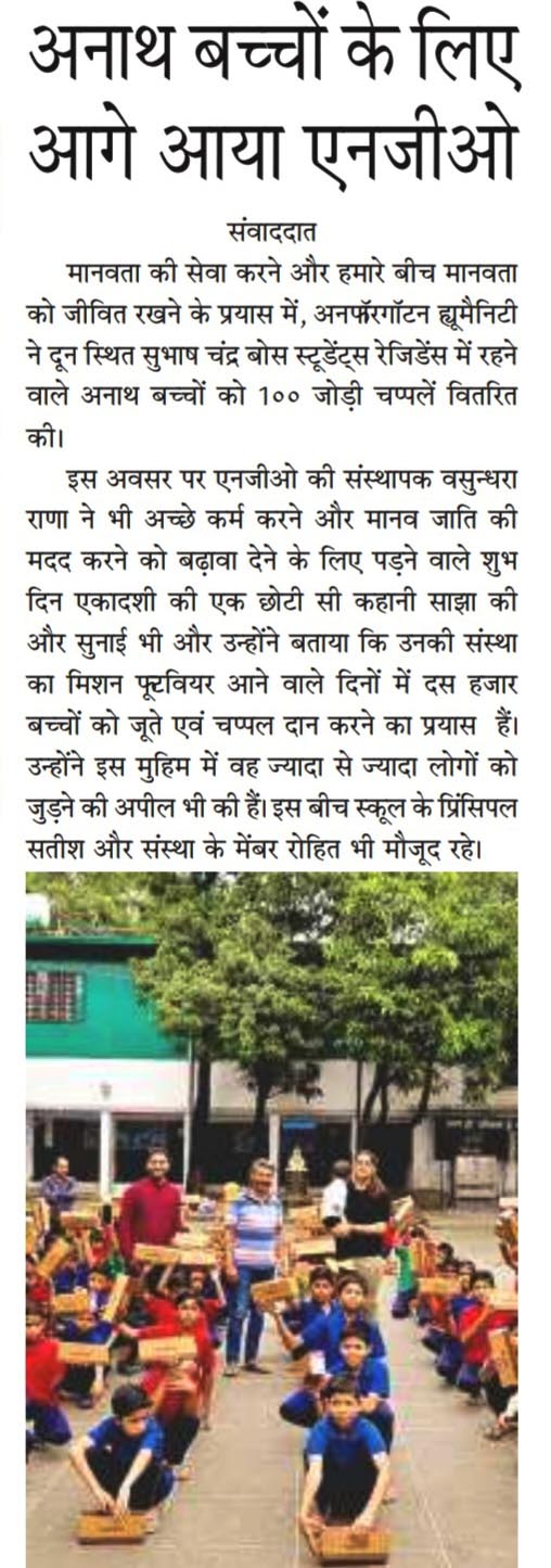 UH standing for unforgotten humanity refers to the rise of humanity again....there are still some people out there who haven't lost humanity completely...there's still some humanity left out in the world when everyone's is becoming selfish day by day. This organisation is doing a wonderful job by helping underprivileged kids...they not only provide them with basic amenities but also encourage them to cope up with the extra curricular activities,but also help them understand basic health issues,and even take care of the health issues of those children....this organisation took a survey of about 55 schools in and around Dehradun, Uttarakhand to check if the students were provided with amenities they needed(which were not provided by the government) and helped the children with that.This organisation wishes to establish an economical institution for these children and provide them with the best so that they can strive for the best they can have.