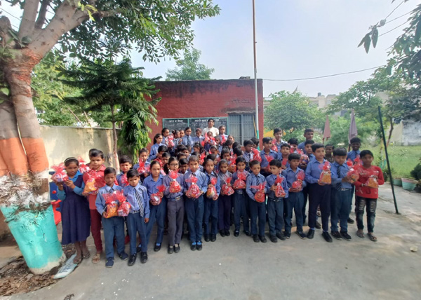 The organizer distributed sweets packet to the government school kids as a kid gesture to celebrate someone's birthday.
